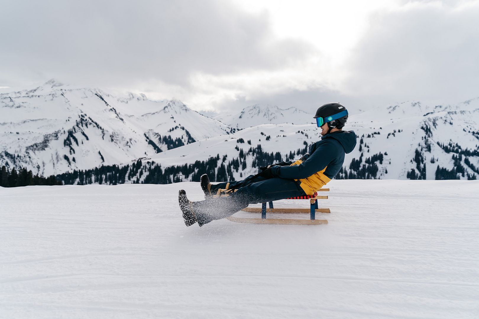 Schlitten können in den Sportgeschäften in Damüls ausgeliehen werden. Der Transport der Rodel im Uga-Express ist problemlos möglich.