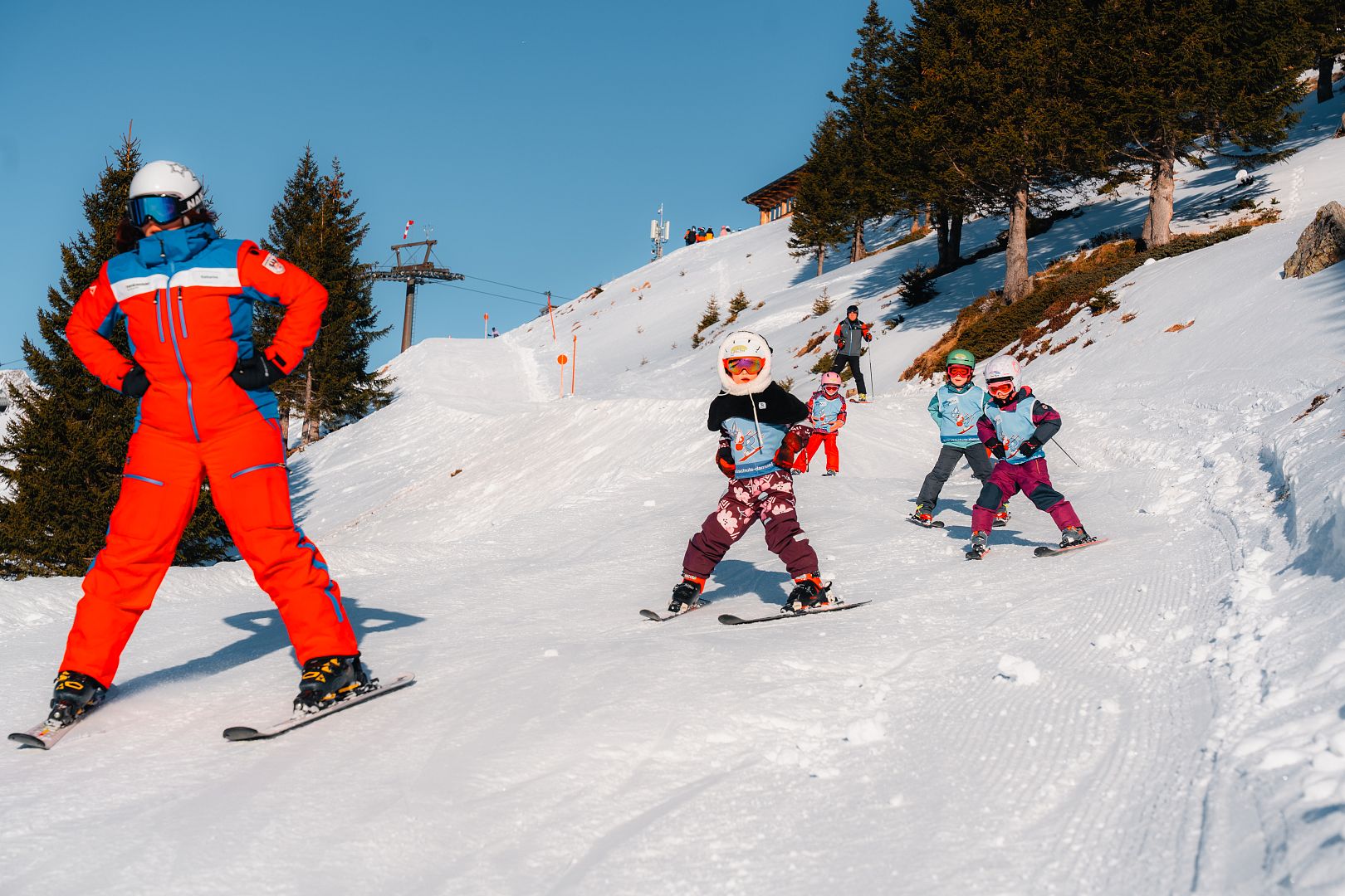 Die gut ausgebildeten Skilehrerinnen und Skilehrer kennen das Skigebiet in- und auswendig, wissen um Sicherheit und Fortschritt und schaffen mit Spaß und Motivation ideale Lernbedingungen. Vom ersten Plough-Turn bis zur souveränen Carving-Kurve – hier lernt jede*r in seinem Tempo.